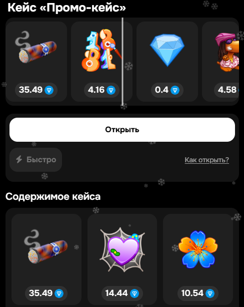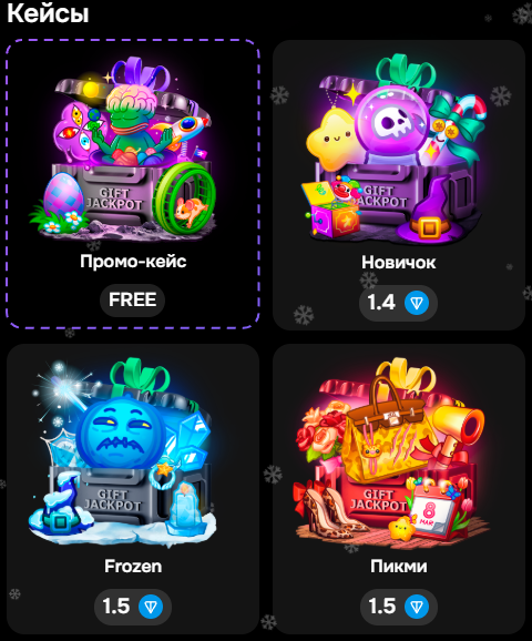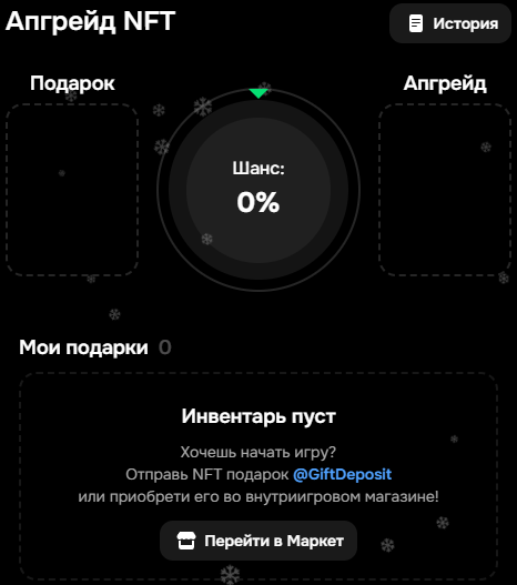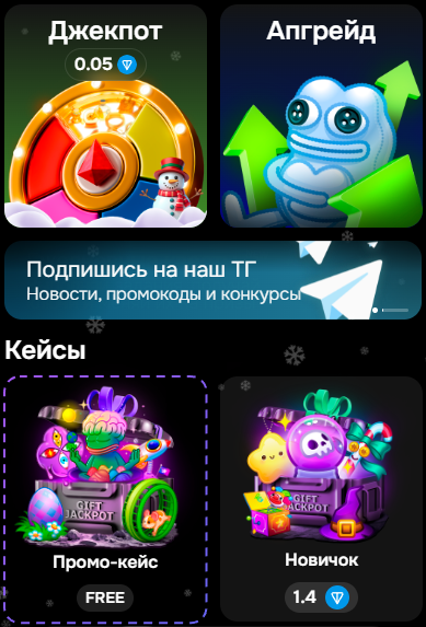 PvP-режим, в котором пользователи делают ставки NFT-подарками. Чем выше стоимость предметов, тем выше шанс на победу.