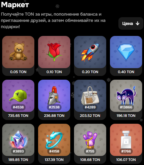 На платформе доступен собственный маркет NFT-подарков, где представлено более 2000 предметов.