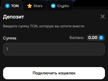 Подключите TON-кошелёк (TON Space, Tonkeeper, OpenMask или Tonhub) или пополните звездами.